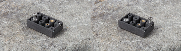 若要安裝在熱塑性零件中,例如以SLS 粉末列印的零件,請遵循特定硬體的安裝說明。典型的過程是使用烙鐵(無論是否帶有特殊附件)來加熱插件,從而將熱量傳導到周圍的塑膠中。周圍的材料變軟,透過用烙鐵向下按壓,您可以將插件輕輕地壓入列印零件中。在安裝螺絲之前,請務必留出足夠的時間讓材料冷卻並恢復強度。