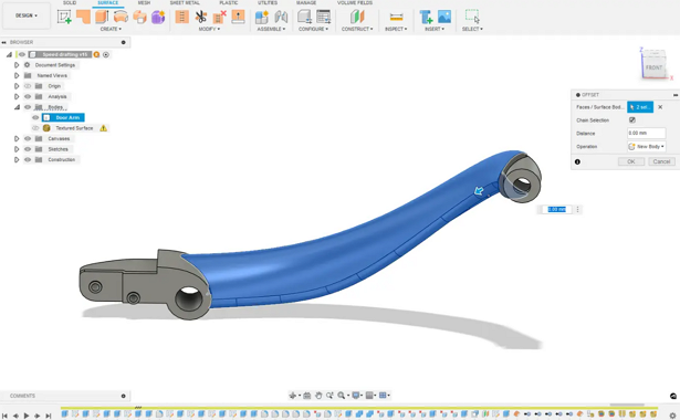 1.1 首先在 CAD 軟體中建立基礎幾何體。選擇要紋理的面並從這些面建立新的曲面體。在 Fusion 360 中,可以使用曲面工具箱中的偏移工具將偏移距離設為零來完成此操作。