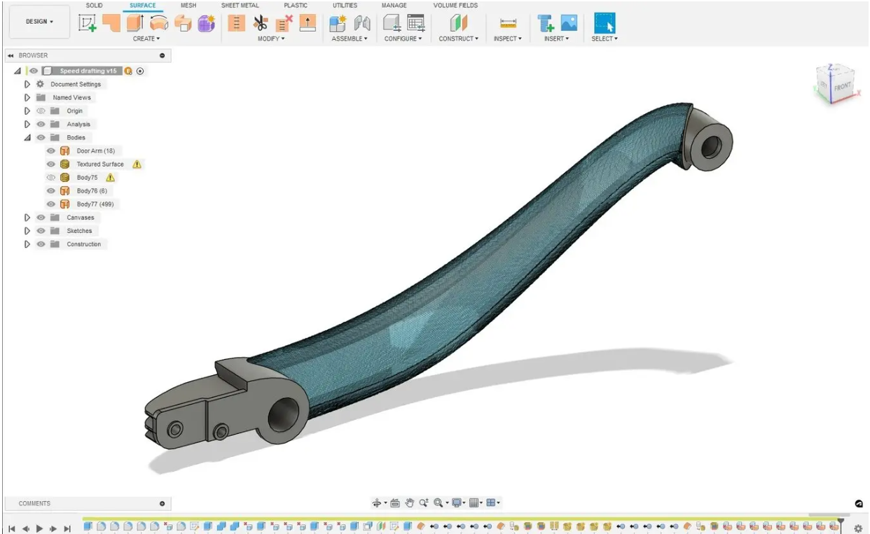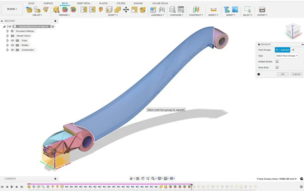 1.2如果使用網格而不是 CAD 主體,則可以透過產生曲面組然後從主體中分割所需的曲面組來完成相同的步驟。這可以直接在 Fusion 360 中完成,也可以在專用的網格編輯工具中完成。