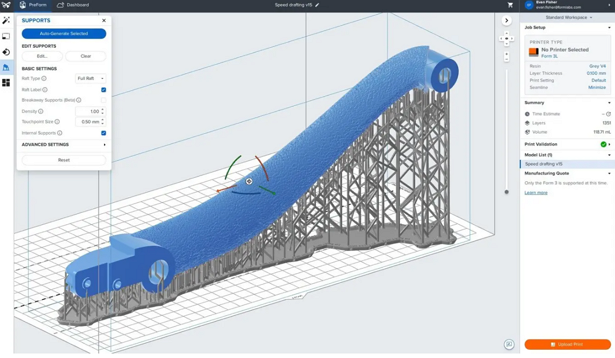 在 PreForm 中定向紋理零件並添加支撐(用於 SLA 列印)。